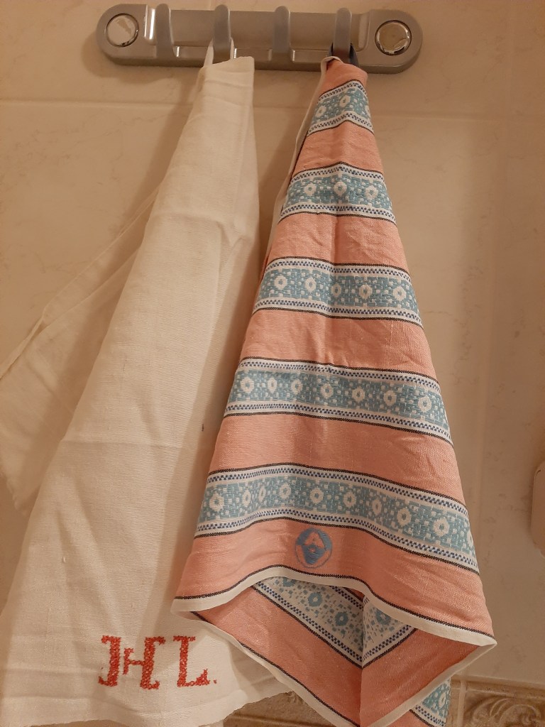 HA-nimikoituja pyyhkeitä en ole löytänyt. Ajan tavan mukaan äiti oli naimisiin mennessään raskaana ja synnytti kaksoset, joista toinen menehtyi kahden päivän ikäisenä. Ehkä pyyhkeiden nimikoiminen ei vuonna 1946 enää ollut se ensimmäinen asia, jota alettiin suunnitella. Nuori äiti oli toisen kerrankin naimisiin mennessään, vasta 25-vuotias.