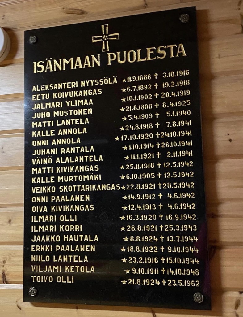 Kun suru-uutinen rintamalta tuli, äitini oli viikkoa vaille 21-vuotias ja hänen kaatunut miehensä 22-vuotias. Kirjan luettuani kaivoin esiin kuvan kotikyläni taulusta, jossa on lueteltu sankarivainajat, ja laskin äidin ja aviomiehen iät. Nyt ymmärrän, miten lohdutonta on ollut menettää elämänsä suuri rakkaus, kun itsekin on vasta aikuistumassa.